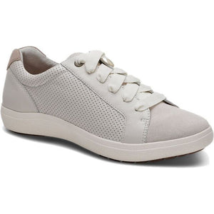 Meet the Courtney Lace-up Sneakers, crafted with both style and functionality in mind. With a leather upper, these sneakers are both durable and chic. Featuring Aetrex Healthy Ingredients, they offer a comfortable lace-up design with a padded heel. The lightweight UltraSky™ midsole and rubber outsole ensure all-day comfort. Step into style and comfort with the Courtney Lace-up Sneakers.