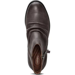 Introducing the effortlessly stylish Mila boots, a must-have addition to your shoe closet. Made from weatherproof genuine leather, this ankle boot is ruched down the vamp, adding a touch of flair to your look. Designed with a convenient side zipper and stretchy gore, these boots provide optimal adjustability, ensuring a perfect every time. The Mila boots feature arch support, a removable insole, and complete underfoot support. Each Aetrex shoe is anatomically designed based on data and learnings from over 50 million global foot scans. This ensures you're getting the best fit for your feet and premium support for your body from the ground up.