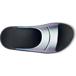 Luxe: Vibrant treatments and prints bring some extra fun and expression to OOFOS’ classic slide silhouette.