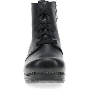 A cold weather favorite, Sigourney offers classic stapled clog comfort in a cozy lace-up boot with multi-colored lining.