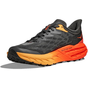 A workhorse designed for technical trails, the Speedgoat returns with less weight and more traction than ever before. A new shoe from outsole to laces, this trail beast is updated with Vibram® Megagrip with Traction Lug for enhanced grip on loose soil. Retaining the same stack height and rocker profile, the Speedgoat 5 employs a lighter midsole compound and heartier, double layer jacquard mesh to inspire confidence on any terrain.