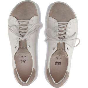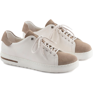 The casual BIRKENSTOCK Bend sneaker boasts a simple design which can be combined with almost anything. An additional midsole made from PU and cork ensures excellent shock absorption. The breathable microfiber material guarantees optimum moisture absorption. This version stands out with its special material mix. The high-quality, lightly structured natural leather is complemented by what’s known as flesh-out leather. The inside of the nubuck leather is given a velvety soft feel in elaborate processing steps and then becomes the shoe’s upper.