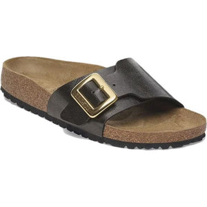 The Catalina sandal in embossed, shimmery Birko-Flor® with a shiny Luxe Buckle and eyecatching texture. Designed around Birkenstock's original contoured footbed for support, this one is ready to chase the sun when you are.