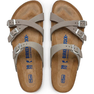 The BIRKENSTOCK Franca is a chic sandal, featuring stylish cross-over straps. With its additional foam layer, the soft footbed offers extra comfort for all day wear. The upper is made from high-quality, soft nubuck leather.