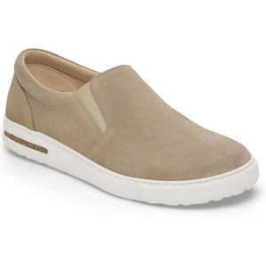 Just slip in! The BIRKENSTOCK Oswego is a handy slip-on shoe that will delight both men and women alike. The casual low shoe features elastic inserts which make it easy to put it on and take it off in no time. The flexible rubber sole with a shock-absorbing cork-PU intermediate layer and the padding at the edge of the shaft result in even more comfort. The upper is made from especially soft suede which hugs the foot like a second skin.