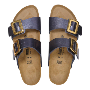 The BIRKENSTOCK Sydney proves that fashion and functionality can go hand in hand. With its two simple straps, it’s a real hit with women who want both high fashion and comfort. This sandal version has a silky sheen finish. The shiny, gently rounded padded buckles are especially eye-catching. The upper is made from the skin-friendly, hard-wearing synthetic material Birko-Flor®.