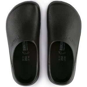 The BIRKENSTOCK Professional Profi Birki is designed to offer healthcare and utility workers exceptional stability and comfort across various work environments. With its raised heel and extended front, the Profi Birki securely encloses the entire foot, encouraging a natural stride and providing reliable grip on smooth surfaces thanks to its nonslip PU sole. Ideal for hospital, kitchen, and food industry settings, this clog boasts excellent hygiene features: its oil- and grease-resistant polyurethane material can be washed up to 80°C, and its removable, anatomically shaped PU footbed is washable up to 60°C and can be disinfected. Certified for occupational use, the Profi Birki is a trusted choice for professionals who require both durability and ease of maintenance.