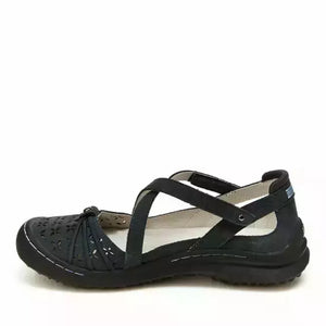Put a classic twist on your trek with the Pine. Accents like a floral engraved stud on the front and a double criss-cross strap gives this outdoorsy style a hint of classic femininity. Plus, the straps open on both sides of the shoe for super easy on and off. The outsole and removable insole of this high-traction shoe are constructed with eco-friendly materials, including recycled rubber.