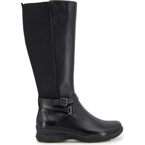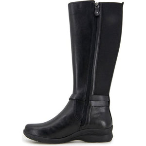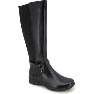 Dress to impress in the Taylor boot, a sophisticated boot with style to spare. Taking inspiration from a classic riding boot, the knee-high style is crafted from the finest leather and designed with a comfortable, flexible outsole. Subtle contrast from a mixed material design adds visual interest to the boot, and a decorative strap with small metal buckle rounds out the sleek look.