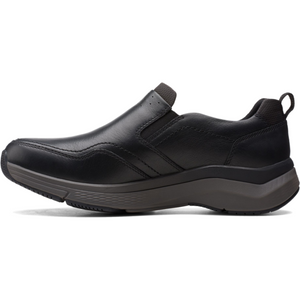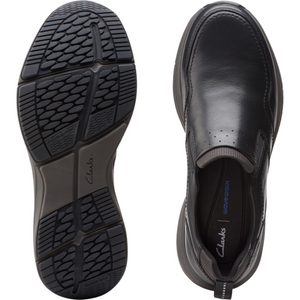 A crafted active slip-on men's shoe from Clarks' Unstructured collection, this style benefits from the Wave Walk motion control technology which features a rocker outsole to aid your natural walking movement and helps propel you further, for longer. A Contoured Comfort footbed also delivers sublime underfoot comfort while a C-Shell membrane protects from the elements and keeps feet dry. Premium leather uppers and sustainable materials in the midsole, outsole and footbed add up to a luxe feel.