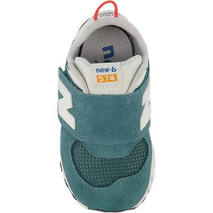 ‘The most New Balance shoe ever’ says it all, right? No, actually. The 574 might be New Balance's unlikeliest icon. The 574 was built to be a reliable shoe that could do a lot of different things well rather than as a platform for revolutionary technology, or as a premium materials showcase. This unassuming, unpretentious versatility is exactly what launched the 574 into the ranks of all-time greats. As hybrid road/trail design built on a wider last than the previous generation’s narrow racing silhouettes, the 574 offered a uniquely versatile mix of new, different, uncomplicated, rugged, durable, and comfortable that was adopted as a closet staple across the globe. That’s why today, the 574 is synonymous with the boundary defying New Balance style, and worn by anyone. With the 574 NEW-B Hook & Loop for kids, the same style inspiration is pared down for the smallest feet.