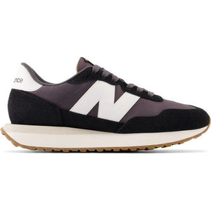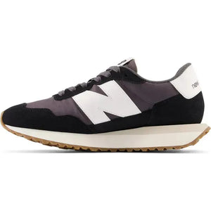 The running shoes of the 1970s might best be described as deceptively simple. While lacking the visible technology and aggressive design of later years, the innovations of the ‘70s would lay the foundation for modern performance. The 237 is a contemporary reinterpretation of ‘70s running heritage that melds a range of heritage design inspirations into one deceptively simple, exceptionally versatile, contemporary silhouette. An EVA midsole, herringbone outsole and streamlined upper offer a classic launching point for modern flourishes like oversized N branding, extended midsole length, and gator inspired foxing and mudguard. You could call the cohesion of the 237’s familiar feel and exaggerated updates the simplest way to make a statement.