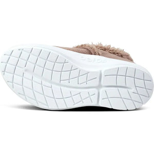 The OOcoozie provides the perfect blend of cushion and stability for both indoor lounging and quick errands out. The upper is constructed with a warm vegan sherpa material that is both recyclable and machine washable. Like all OOFOS products, it has our unique one-of-a-kind OOfoam™ technology that absorbs impact, so your body doesn’t have to. Add in the patented footbed design that cradles and supports arches and you’ll recover faster. Active recovery with the soft, cozy warmth you desire in a versatile hygge style.