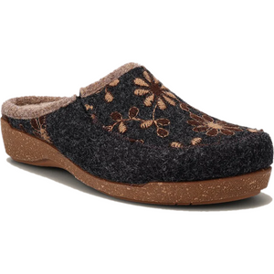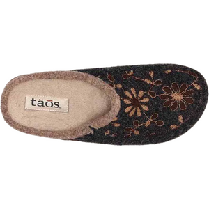Woolderness 2 is a cozy slide on clog, perfect for cold nights or you can enjoy wearing out into town all day long with an indoor/outdoor rubber outsole. Uppers feature vibrant, hand embroidered Italian wool and faux fur lining that make them irresistible. Taos Curves & Pods® removable footbed and our flexible corked midsole delivers comfort that lasts all day and all night.
