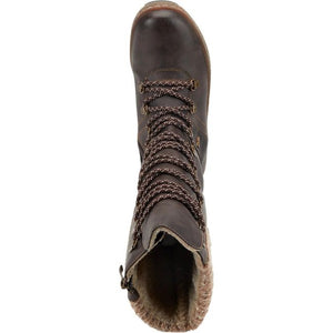 Experience the comfort revolution in this water resistant manmade leather pull-on boot featuring a hiker-inspired lace-up vamp and an easy on/off full length inside zipper all on a traditional rubber wedge outsole.