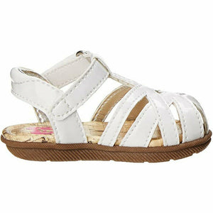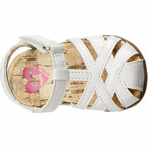 An adorable patent sandal is fashioned with an easy adjustable closure and a lightweight, flexible sole to keep tiny feet comfy. Comes packaged in a polka dot box that's perfect for gifting.