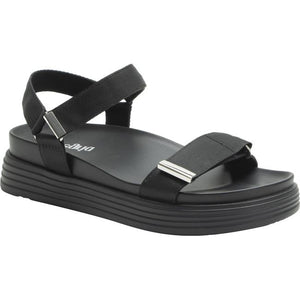 Experience effortless style and all-day comfort with the Alegria Allyson Black Sandals. Designed for versatility and function, these sandals feature a sleekBlack textile upper that pairs seamlessly with any wardrobe. Whether for everyday wear or outdoor adventures, the Allyson provides the support you need with a contemporary look. Built withdual-density construction, these sandals offer asoft molded polyurethane insole with integrated arch support for superior cushioning. Thelightweight, non-flexing polyurethane outsole ensures stability, making each step feel secure. Twoadjustable hook-and-loop closures with metallic hardware allow for a custom fit, while thewater-friendly design ensures durability in various conditions. Aslip-resistant and non-marking outsole enhances traction on different surfaces, making these sandals the perfect choice for comfort and function.
