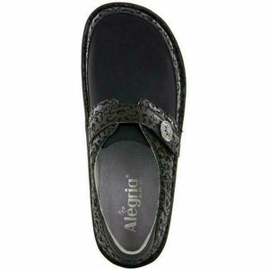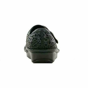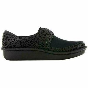 The medallion buckle on the adjustable hook-and-loop strap is just the start of the craftmanship and sophistication of the Alegria Brenna in Aristoclass. A black on black velvet vine pattern on the leather upper is reminiscent of an aristocratic dinner party. This fashion-forward shoe also incorporates the Alegria Dream Fit technology open cell neoprene fabric that conforms to the contours of the foot for a perfect flexible fit. The mild rocker outsole with hand stitching and signature ergonomic footbed provide comfort and superior arch support. Add a touch of class to your footwear choices on the job and off with the Alegria Brenna in Aristoclass.