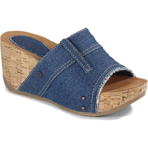 Get ready to slide into summer with a touch of chic and elegance with the Bussola Felicia Platform Slide. Its denim upper adds a trendy twist to any outfit while the convenient slip-on design makes them perfect for any casual occasion. These open-toe wedge sandals are a must-have for hot summer days!