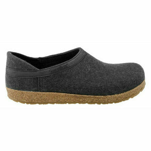 Need a little extra security from your clog? The Haflinger GZH closed back clog is the shoe for you. The roomy toe box and closed-back makes this clog an easy choice when having to face the elements. 100% boiled wool upper surrounds your feet and allows for breathability and moisture wicking. The footbed boasts a wool lined latex insole while the cork/latex midsole helps with arch support and shock absorption making this shoe perfect for all day wear. Indoors or outdoors, the rubber outsole makes this shoe go from home to cobble stones in a blink of an eye.