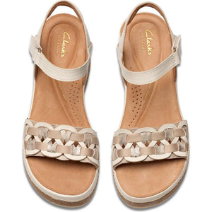Summer dressing made easy – that’s exactly what happens when Clarks' Kassanda sandal is part of the equation! Grounded atop a cork-effect wedge heel that’s oh-so easy to walk in, this warm-weather profile boosts your style status, and your comfort too. It’s all thanks to a molded Contour Cushion footbed that keeps feet supported from beach to bar and back again!