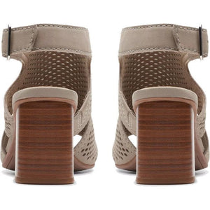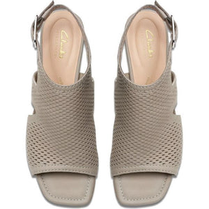 Clarks' new staple heeled sandal Siara 65 Flow combines a contemporary square toe shape with refreshed core colorways and stacks of summer comfort. Butter-soft stone nubuck uppers with cut-out detailing complement the foot perfectly – while our pillow soft Contour Cushion footbed and flexible sole support your natural walking motion. Set on a modern stack-effect heel for effortless everyday wear.