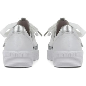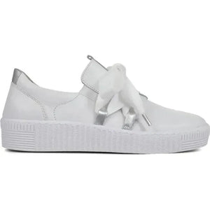 A glamorous take on the classic trainer, these ladies' sneakers are a luxurious way to finish your casual looks. Crafted from quality leathers, the ladies' trainers are built upon a chunky, ribbed outsole for a contemporary finish. Styled with wide, chunky laces and a contrasting metallic heel counter, these trainers are the perfect partner for leather trousers, jeans and athleisure looks alike.