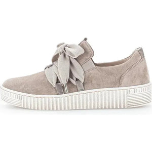 A glamorous take on the classic trainer, these ladies' sneakers are a luxurious way to finish your casual looks. Crafted from quality leathers, the ladies' trainers are built upon a chunky, ribbed outsole for a contemporary finish. Styled with wide, chunky laces and a contrasting metallic heel counter, these trainers are the perfect partner for leather trousers, jeans and athleisure looks alike.
