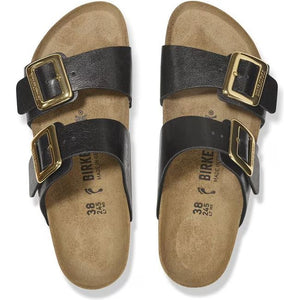 The BIRKENSTOCK Sydney proves that fashion and functionality can go hand in hand. With its two simple straps, it’s a real hit with women who want both high fashion and comfort. This sandal version has a silky sheen finish. The shiny, gently rounded padded buckles are especially eye-catching. The upper is made from the skin-friendly, hard-wearing synthetic material Birko-Flor®.