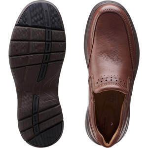 Un Brawley Step - This Unstructured slip-on style benefits from a flexible pair of elastic gores and an Air Circulation System that pulls in fresh air to keep feet in dry comfort. Its upper is crafted from full grain leather with a nubuck panel at the heel, and a full grain leather sockliner surrounds the foot in soft comfort. Its durable rubber outsole is lightened by an EVA midsole and a removable Ortholite® footbed dulls impact and wicks away moisture.