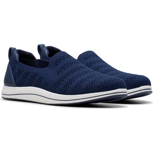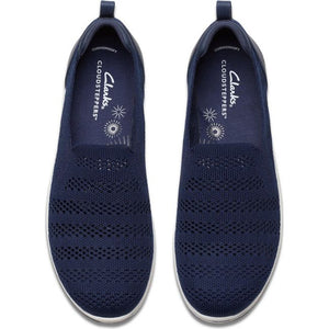 If vacation is your vibe, slip on these Clarks CLOUDSTEPPERSTMsneakers for an extended stay. From the breezy knit upper, supported by comfy elastic, to the Cushion Soft footbed to the sporty stripe, they're a comfy, easygoing companion to any excursion -- even those of the everyday life variety! From Clarks Footwear.