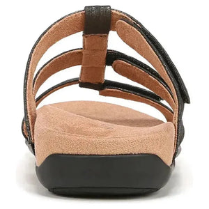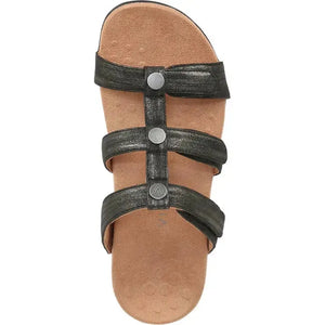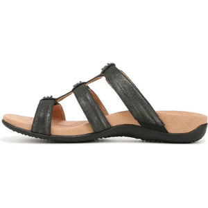 Smart and stylish, Amber’s three straps adjust easily for those long flights and workdays when your feet need a little more breathing room.Three points of adjustability on this sandal deliver completely customizable comfort. Square enamel trim beads add interest to the top of the vamp.