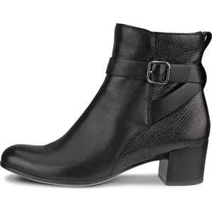 The ECCO WOMEN'S DRESS CLASSIC 35 ANKLE BOOT - timeless elegance in an ankle-boot form for the stylish, contemporary woman. Inspired by minimalist Danish design, ECCO DRESS CLASSIC 35-heeled boots are crafted in premium leather for comfort and durability. The close-fitted silhouette gives your feet a feminine touch. The buckle detail says modern street style. Features ECCO FLUIDFORM™ seamless construction with lightweight PU soles and a 35 mm block heel for an elevated lift. Ultra-stylish boots you can wear season after season and never miss a step.