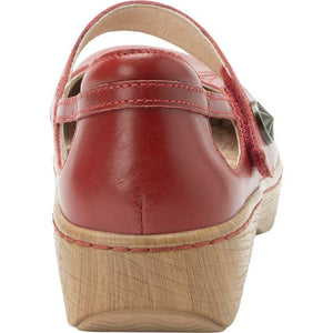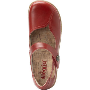 Introducing the Alegria Onika in the vibrant Big Red color, a modern Mary Jane that perfectly balances style and comfort. This version features a smooth red leather upper with a convenient hook-and-loop strap for easy adjustments and a secure fit. Inside, a padded collar and removable microsuede footbed conform to your feet for exceptional comfort. The patented Alegria footbed ensures excellent arch support, while the chic wood-look bottom adds a touch of flair. The Onika offers a sleek and comfortable option, perfect for adding a pop of color to any outfit.