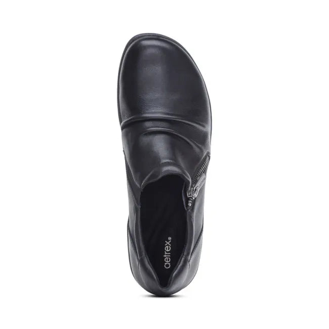 Let your feet indulge in style and support with the Katie. This casual style is designed with ruching down the vamp and features arch support, pressure relief technology, and a side zipper for easy on and off. Crafted with luxurious genuine leather and a Dual Density Outsole, the Katie will provide long-lasting comfort and durability. Each Aetrex shoe is anatomically designed based on data and learnings from over 50 million global foot scans. This ensures you're getting the best fit for your feet and premium support for your body from the ground up.
