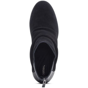 Elevate your style to new heights with the Kara wedge ankle boots, where fashion-forward design meets unrivaled all-day comfort. Crafted from weather-friendly genuine suede and leather, this boot features a convenient zipper for easy adjustability. The Kara boot offers exceptional arch support and complete underfoot support, ensuring a stable and comfortable stride. Step confidently into any occasion with the Kara.