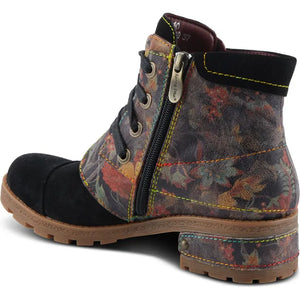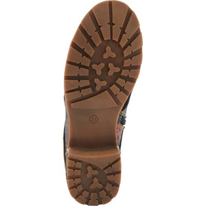 Add an eye-catching feminine touch to your look with the floral breeze of the SERNA suede lace up bootie. This chic bootie features a standout floral printed hooded shaft that brings a fresh autumnal vibe. The inside zipper allows easy on and off access, while the lug sole provides durable traction. The floral print wrapped heel delivers a final touch of lovely detail.