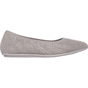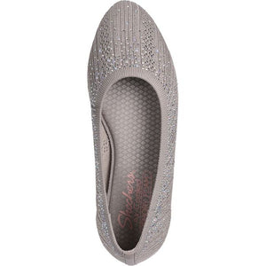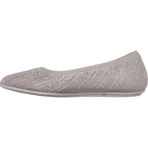 Go green in sparkly eco-friendly style wearing Skechers Cleo 2.0 Glitzy Daze. This product's upper is made with at least 20% recycled content by weight, which helps to reduce waste, this vegan Stretch Fit® skimmer features a sparkle knit upper with pearl and rhinestone embellishments and a cushioned Skechers Air-Cooled Memory Foam® insole. Our Planet Matters: Good for your feet. Good for the world.