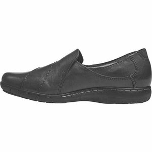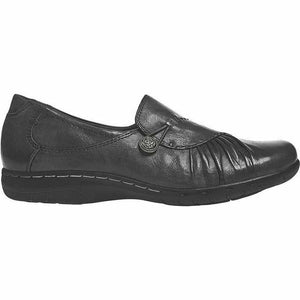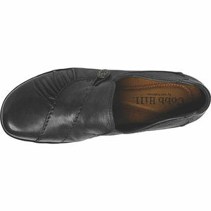 Sometimes you just need a good solid shoe for all-day comfort. But what about all-around style? This modern slip on has it all with asymmetrical ruching over the top and an antique metal button with bungee clasp for an ever so fashionable fit.