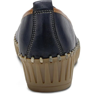 Dainty and trendy premium leather slip-on loafer with a round toe silhouette features a stretch elastic v-cut vamp and a contrast stitching design all on a sculpted rubber wedge outsole with a flexible forefoot and pull-on heel tab. The Tispea wedge, made in Turkey, has a soft and cozy leather lining and a removable leather padded insole.