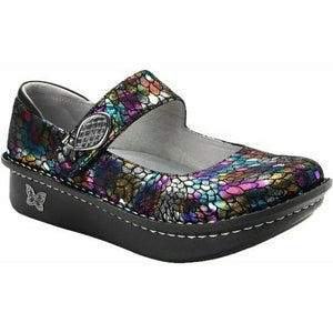 Swim through your shift and your days off in this school of fish that’s bursting with color on the Paloma Mary Jane in Minnow Rainbow by Alegria! An iridescent array of colors swishes across the stain-resistant leather upper of this stylish and whimsical mary jane from Alegria. A fun silver-tone fish adorns the adjustable hook-and-loop closure strap to keep your mood swimming in good vibes whenever you wear this comfortable shoe. A slip-resistant, classic rocker outsole teams up with the signature Alegria footbed for a supportive and comfort-driven feel on your foot. A slight padded collar gives you extra support at the back of the ankle and hand-stitching adds an extra ounce of delight. Swim with ease through your day with the Paloma in Minnow Rainbow by Alegria.