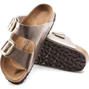 The BIRKENSTOCK Arizona is a genuine classic that has been delighting both men and women with its timeless design for decades. This version brings two popular designs together. It features a subtle silky sheen finish and a large, elegant pin buckle. The upper is made from the skin-friendly, hard-wearing synthetic material Birko-Flor®.