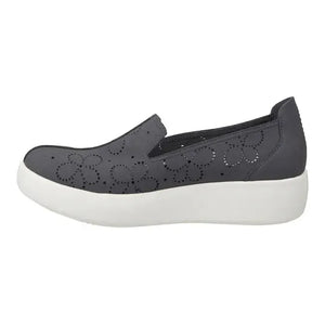 Get ready to embrace the perfect blend of fun and comfort with Coexist in grey, the ultimate Travel Lite® women's slip-on sneaker that's so lightweight, you might just forget they're on your feet. With their low platform and playful perforations, these dark grey slip-ons are a fashionable essential that are the perfect companion for work, leisurely walks, and those long days on your feet.