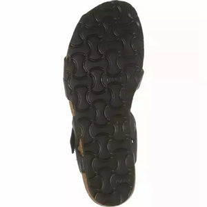 The Kayla is a three-strap sandal with a hook & loop strap at the instep and a backstrap for added stability and support. Naot's anatomic cork & latex footbed is wrapped in a pampering suede and molds to the shape of the foot with wear.
