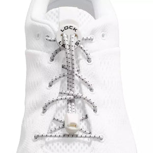 LOCK LACES® are the original “no-tie shoelaces”. Installation is simple: lace your shoes with your new Lock Laces®, thread the ends of the laces through the patented double eyelet lock and slide the lock to the tongue of the shoe, then trim the excess lace with a pair of scissors, and snap on the cord clips! With LOCK LACES®, you can easily slip your shoes on and off– no more tying! If you’d like to tighten or loosen your laces, simply adjust the locking device for adjustable tension. Just give them a pull and go!