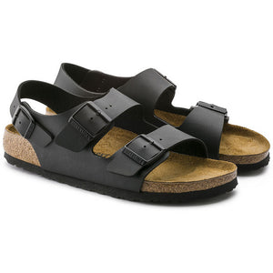 The BIRKENSTOCK Milano guarantees maximum grip and gives the feet stability in any movement scenario. This is thanks to the slightly more compact upper with two straps and the wide backstrap. The upper is made from the skin-friendly, hard-wearing synthetic material Birko-Flor®.