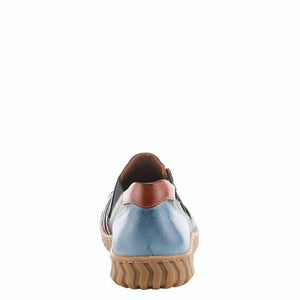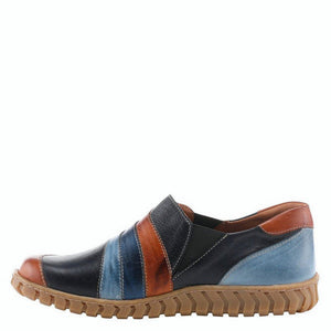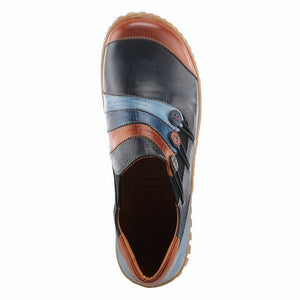 Premium, high-quality leather shoe featuring striking color blocking and unique colorful buttons on a flexible comfort sole.