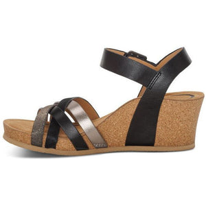 Experience the perfect blend of fashion and support with the Noelle. These wedges feature elegant crossband detailing and provide essential arch support for stability and pain relief. Offering a customized fit with an adjustable hook & loop closure and stretchy gore material, they’re crafted from premium genuine leather for both style and comfort.
