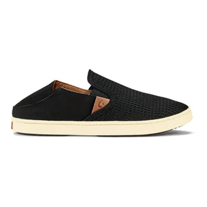 Olukai's Patented Drop-In Heel® design offers both a shoe and slide functionality. Embossed logos and elastic gore details.
