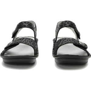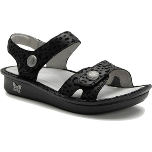 The Vienna sandal is an easy to wear two strap slingback sandal with perfectly matched delicate ornamentation on the straps. Designed with a variety of fun patterns and colors, this style is sure to complement your summer wardrobe. The sandal features Alegria's Mini outsole constructed to mimic a natural rocking motion for improved pressure distribution across the bottom of the foot, and an ergonomically designed footbed that conforms the natural contour of the foot, working to relieve legs, hip and back from long standing hours.